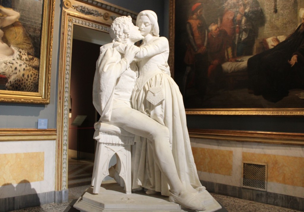 The version of Tantardini’s Faust and Margherita that you see in the photo belongs to the collections of the Galleria di Arte Moderna in Milan and is also known as Il Bacio.