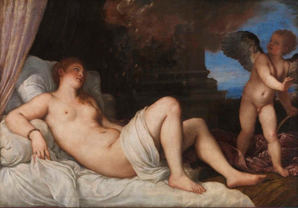Negli stessi giorni dell’onorificenza, volli andare in Vaticano per vedere l’ultima opera alla quale stava lavorando Tiziano. In quell’occasione lo incontrai sicuramente e vidi dipinto a olio su tela della donna nuda nelle vesti di Danae che coglie Giove sottoforma di pioggia d’oro.
