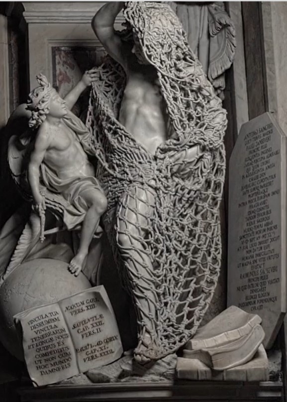 Giangiuseppe Origlia scrisse che il Disinganno era “l’ultima pruova ardita, a cui può la scultura in marmo azzardarsi”. Senza dubbio la rete scolpita dall’artista è una prova di bravura eccezionale.