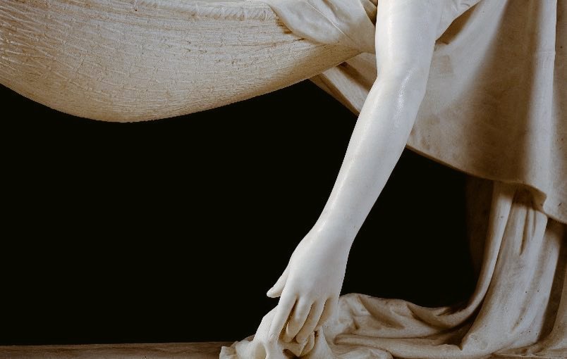 La ragazza poggia il capo sopra un cuscino che rende l’idea di essere morbido e accogliente nonostante sia marmo.