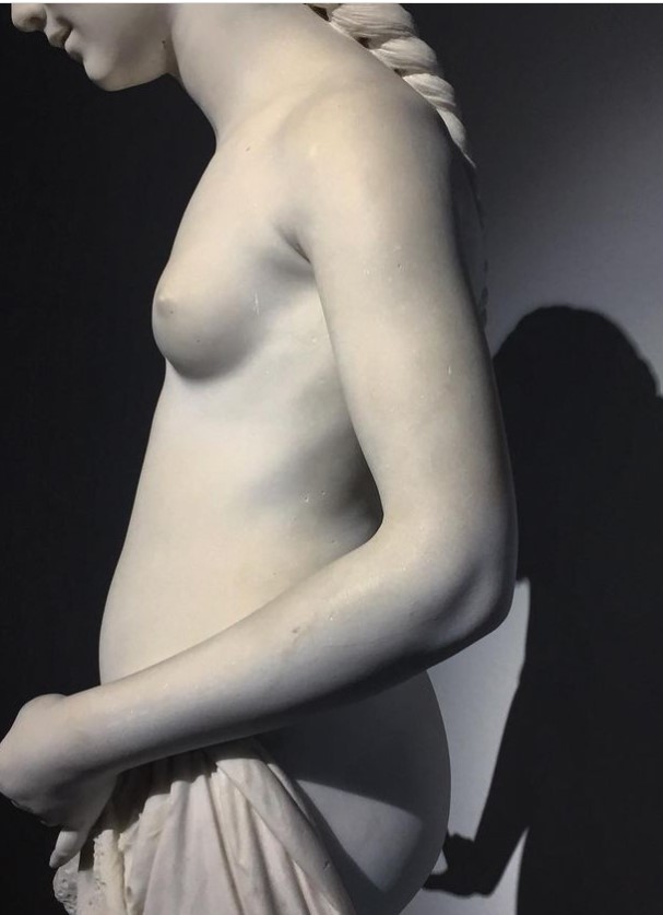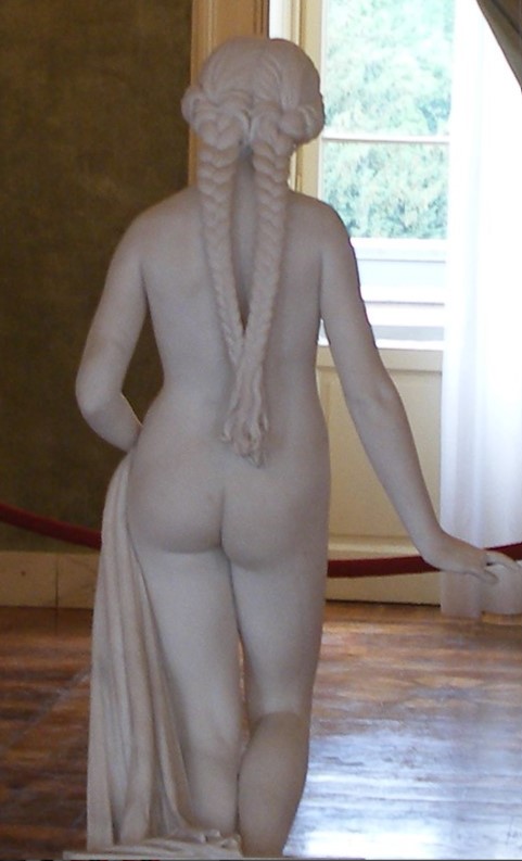 È una splendida opera scolpita nel marmo bianco di Carrara nel 1873. La ragazza assai giovane ha appena finito di spogliarsi e sostiene ancora con una mano l’abito quasi fosse una Venere pudica.