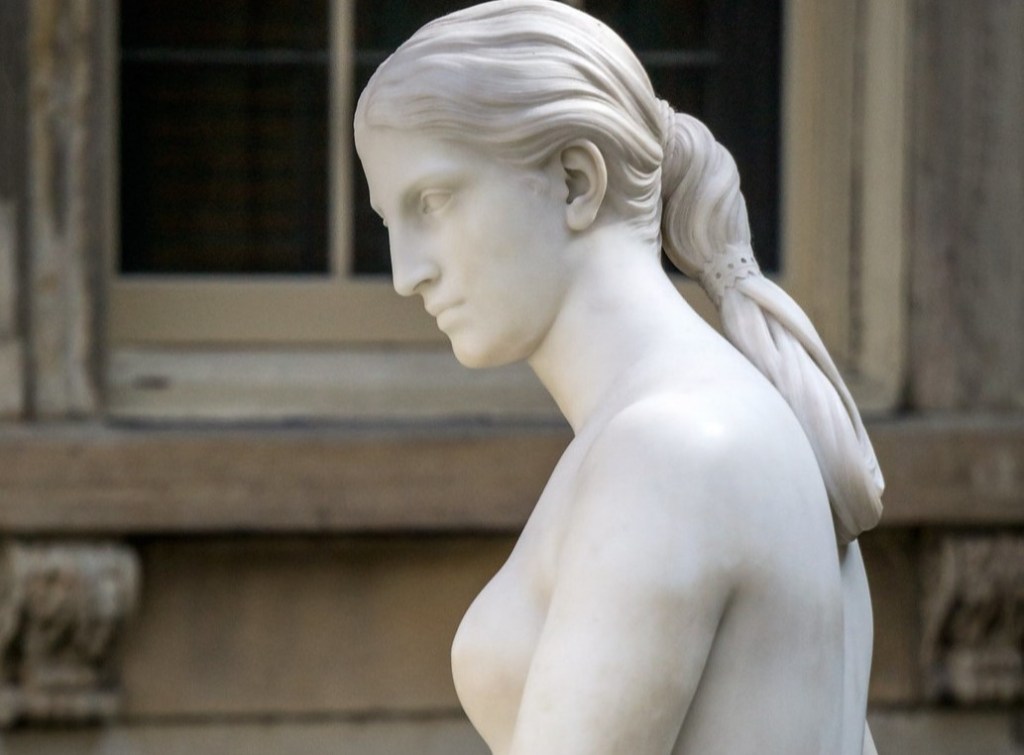 The sculpture of the day that I propose to you today is California by Hiram Power. This work particularly attracts me for a specific detail or the hand at the height of the buttocks holding a twig with two long thorns. It fascinates me and tells a different story from the one it tells looking at the work from the opposite side.