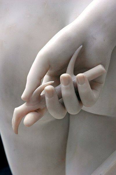 La scultura del giorno che vi propongo oggi è California di Hiram Power. Quest’opera mi attrae in modo particolare per un dettaglio specifico ovvero la mano all’altezza delle natiche che trattiene un rametto con due lunghe spine. Mi affascina e racconta una storia diversa da quella che narra guardando l’opera dalla parte opposta.