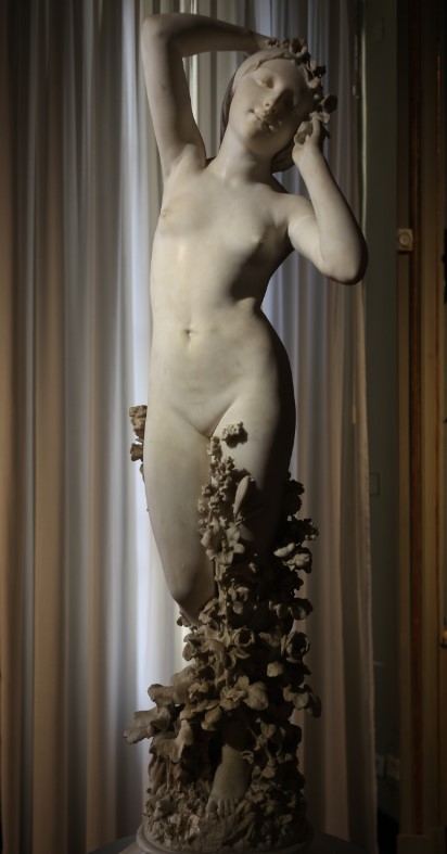 The Sculpture of the day I’m telling you about today is Flora, a refined and sensual work sculpted by Vincenzo Vela in 1858.