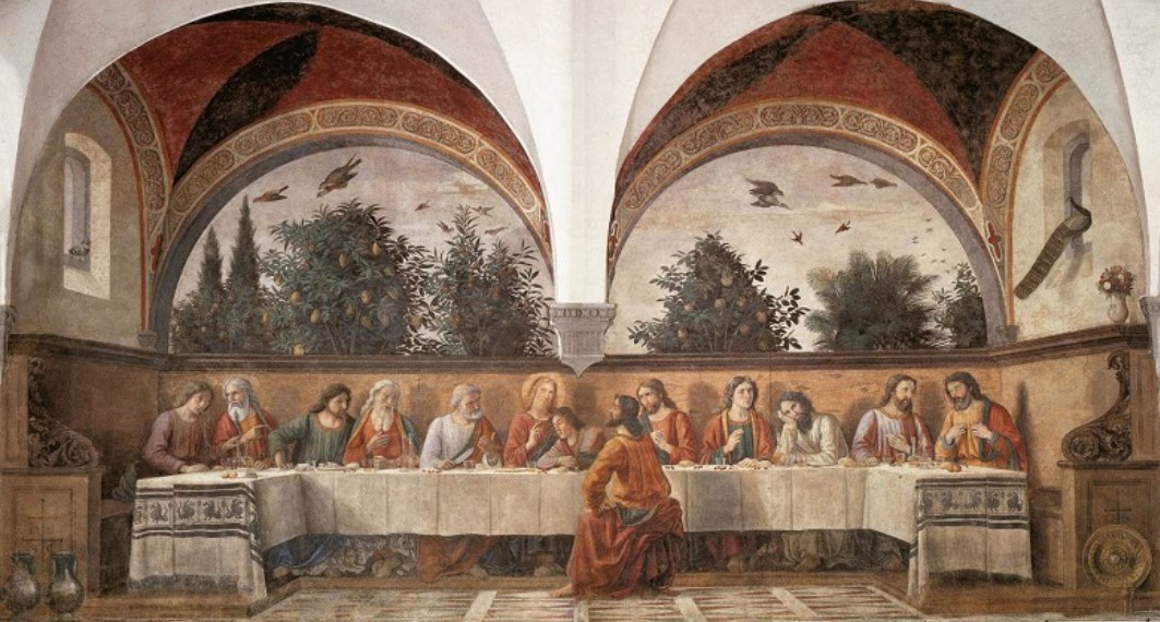 Il grande Cenacolo di Ognissanti, largo 8 metri, fu affrescato nel 1480 dal Ghirlandaio e si apre sul chiostro del convento di Ognissanti. Gli apostoli interagiscono fra di loro discutendo su quanto Cristo ha appena detto: qualcuno di loro lo tradirà.