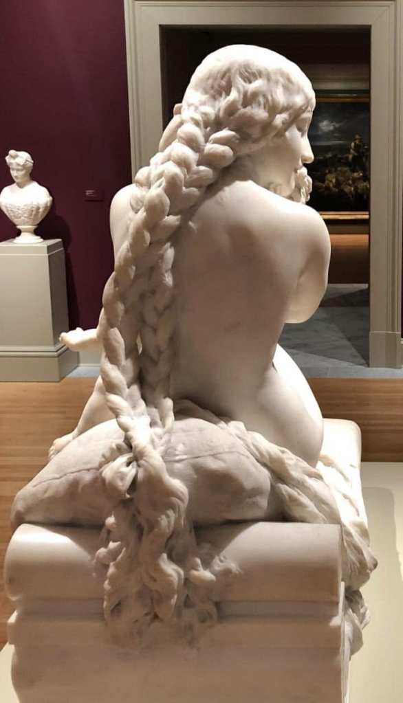 cosa non è quel dorso impreziosito dalla maestria con cui è stata scolpita la treccia che ricade sul cuscino con morbidezza ( eppure è marmo…) fantastica!