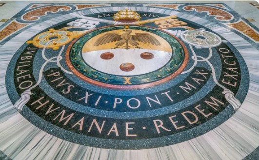 Among the most beautiful coats of arms is certainly that of Pope Pius XI, inserted in the pavement in 1936 to commemorate the restoration of the pavement carried out under his pontificate.