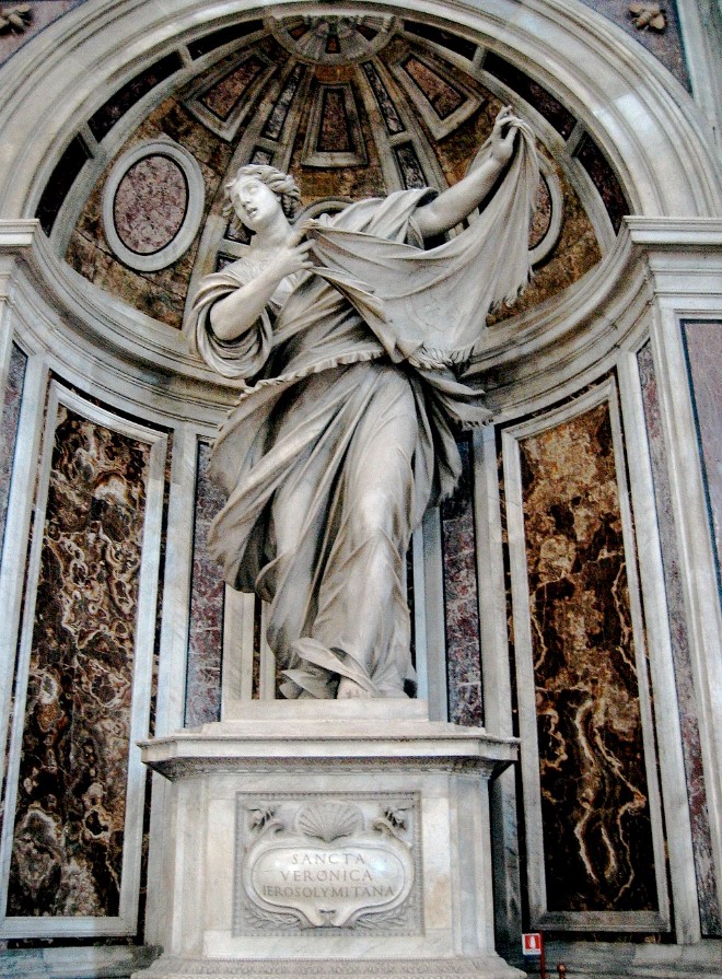 La scultura del giorno che vi propongo oggi è la grande Santa Veronica, ubicata in una nicchia dei quattro piloni che sorreggono il peso della cupola di San Pietro.