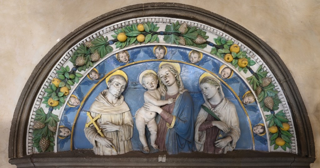 However, the origin is different. The lunette with the Madonna and Child between San Francesco and Sant’Orsola, now located on the central portal, probably comes from the homonymous monastery of Sant’Orsola, a convent located between via Guelfa and via Taddeo, founded in 1309 by Benedictine nuns who in 1435 he became a Franciscan order.