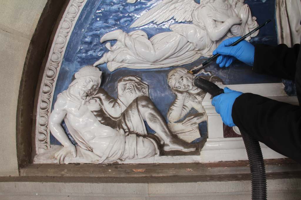 L’intervento, iniziato in piena pandemia e ultimato da poco, è stato eseguito materialmente dal restauratore Filippo Tattini, sotto l’Alta Sorveglianza della funzionaria Jennifer Celani della Soprintendenza Archeologia Belle Arti e Paesaggio per la Città Metropolitana di Firenze e le Province di Pistoia e Prato grazie al sostegno economico di Friends of Florence.