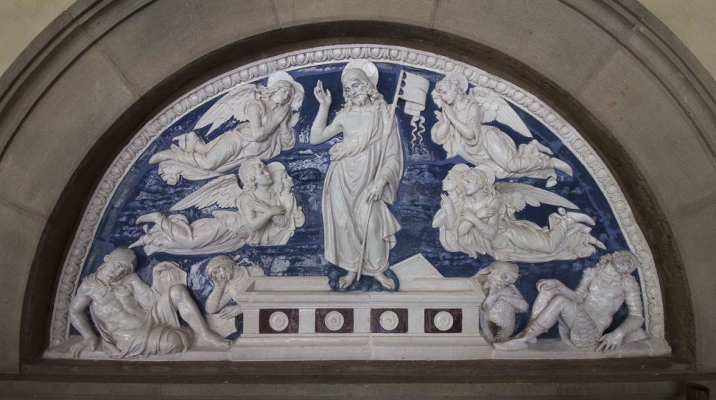 La lunetta dedicata alla Risurrezione invece proviene dalla Chiesa di Santa Chiara di Firenze, collocata fra via dei Serragli e via Santa Maria, fondata nel 1356 e intitolata a San Giovanni Battista e affidata al convento di suore agostiniane.