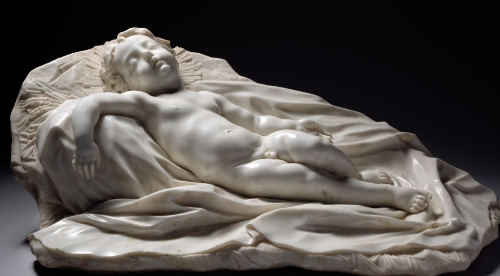 La scultura del giorno che vi propongo oggi è il Gesù Bambino addormentato scolpito da Filippo Parodi, allievo del Bernini e uno dei principali esponenti del barocco genovese.
