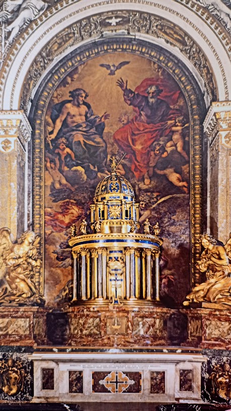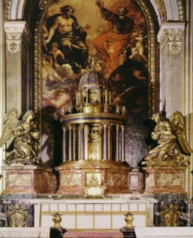 Unfortunately, the tabernacle designed by Bernini was placed on the altar later, but it was and still is so voluminous as to conceal part of the painting with the earthly sphere that depicted God as creator, thus preventing a correct reading of Pietro da Cortona’s work .