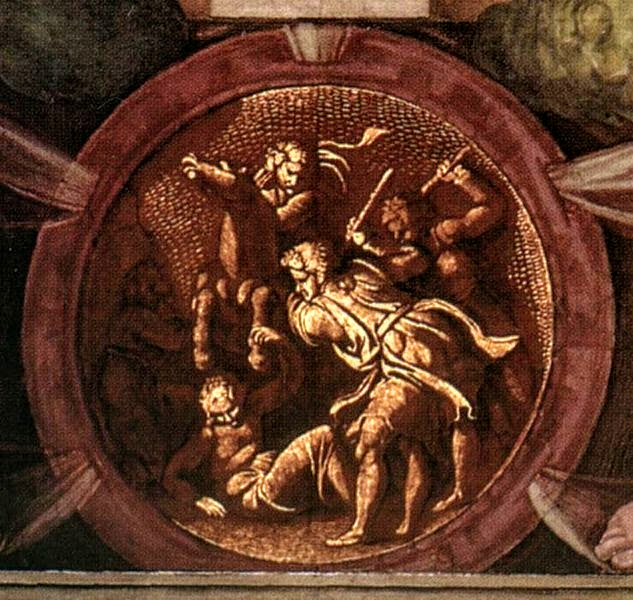 Gioele è uno dei sette profeti che affrescai nella volta della Cappella Sistina nel 1509. Si trova al lato del riquadro dell’Ebbrezza di Noè, proprio al di sotto del grande tino e dalla parte opposta della Sibilla Delfica.