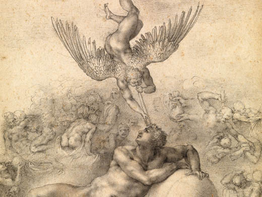Gioele è uno dei sette profeti che affrescai nella volta della Cappella Sistina nel 1509. Si trova al lato del riquadro dell’Ebbrezza di Noè, proprio al di sotto del grande tino e dalla parte opposta della Sibilla Delfica.