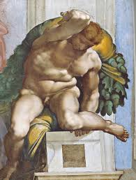 Gioele è uno dei sette profeti che affrescai nella volta della Cappella Sistina nel 1509. Si trova al lato del riquadro dell’Ebbrezza di Noè, proprio al di sotto del grande tino e dalla parte opposta della Sibilla Delfica.
