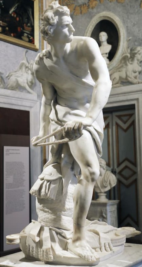 La scultura del giorno che vi propongo oggi è il David di Gian Lorenzo Bernini, scolpito dall’artista fra il 1623 e il 1624.