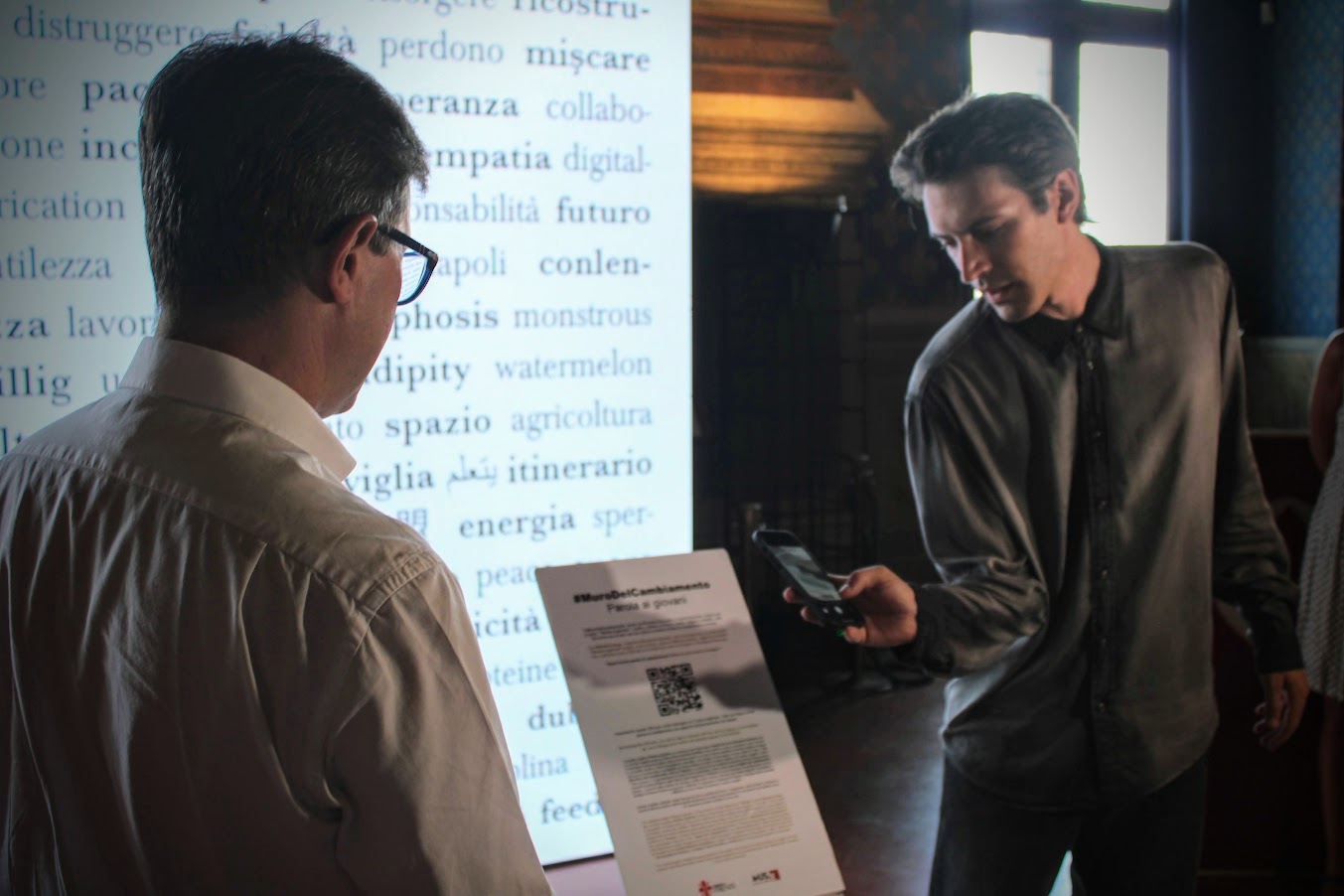 By connecting to the murodelcambiamento.it website or by framing the QRCode positioned in front of the Wall of Change, visitors will be able to write the word they want and immediately view it on the screen in front of them.