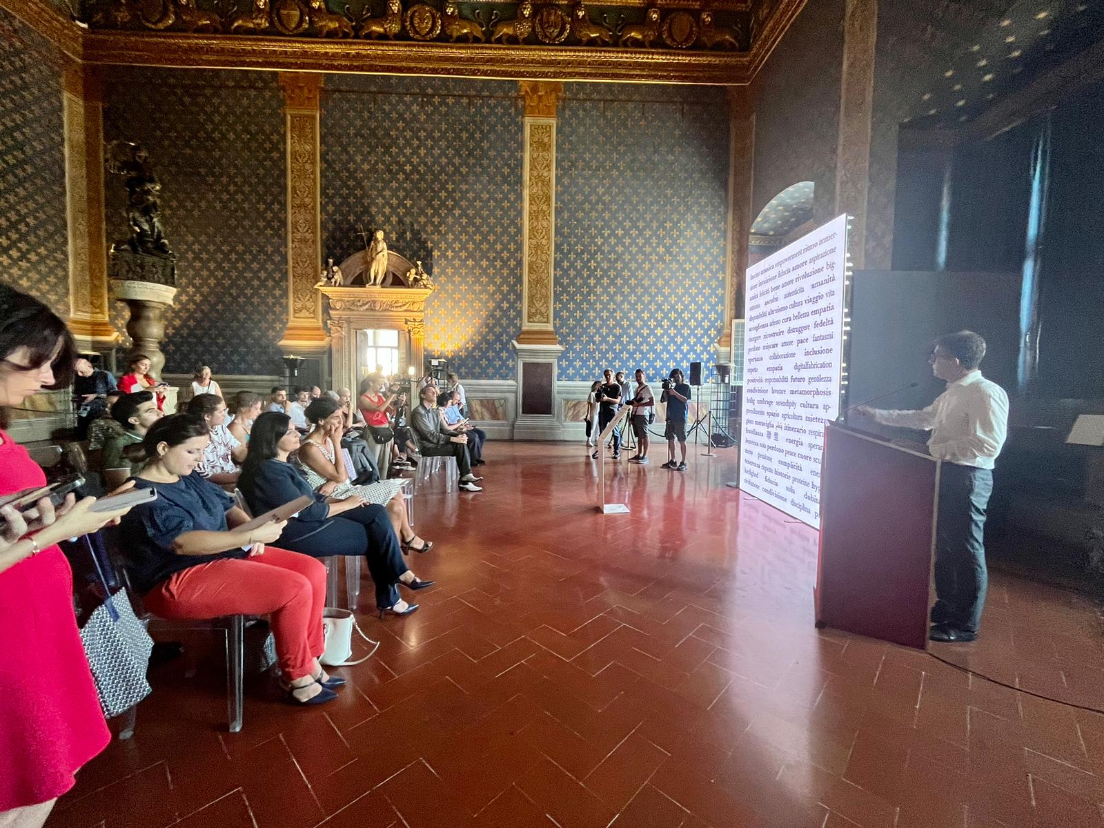 This morning the new interactive installation by the singer-songwriter Giovanni Caccamo entitled “The Wall of Change” was presented in the Sala dei Gigli at Palazzo Vecchio.