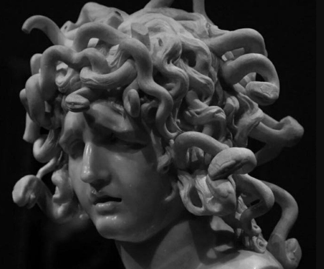 Per dar forma a questo straordinaria opera, Bernini si ispirò al mito di una delle Gorgoni raccontato nelle Metamorfosi di Ovidio. Figlia di una divinità marina, Medusa aveva il potere di pietrificare tutti coloro che incrociassero il suo gelido sguardo.