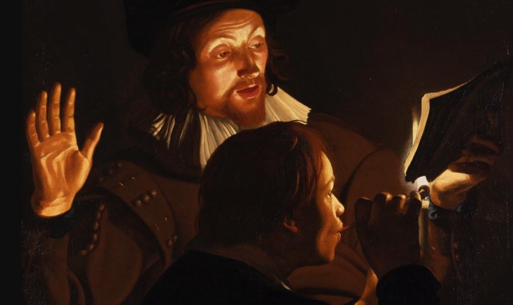 Celebri sono le tele seicentesche fiamminghe di questo tipo, realizzate da Gherardo delle Notti, Adam de Coster e Trophime Bigot messe in dialogo con il Contadino che accende una candela con un tizzone ardente di Angelo Inganni del 1850 e con una silente Natura morta di Giorgio de Chirico.