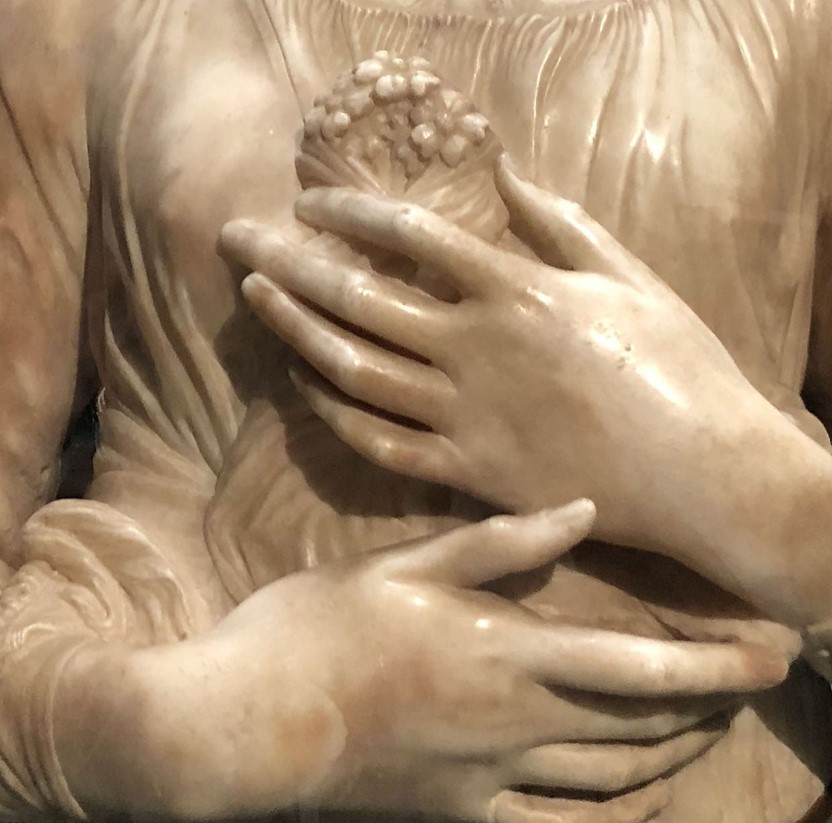 The sculpture of the day that I propose to you today is Verrocchio’s Lady with Bouquet, sculpted by the artist around 1475, the year I came into the world. While Verrocchio was already an established and much requested artist, I was grappling with the first stirrings in that of Caprese.