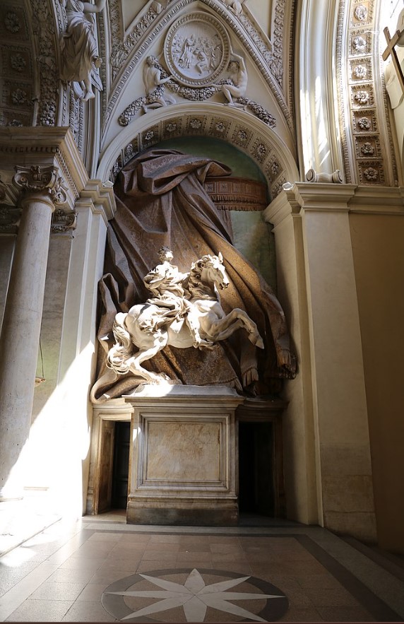 Bernini solved the problem brilliantly, placing a sinuous drapery behind the sculptural group which not only highlights Constantine on horseback but also gives it greater dynamism.