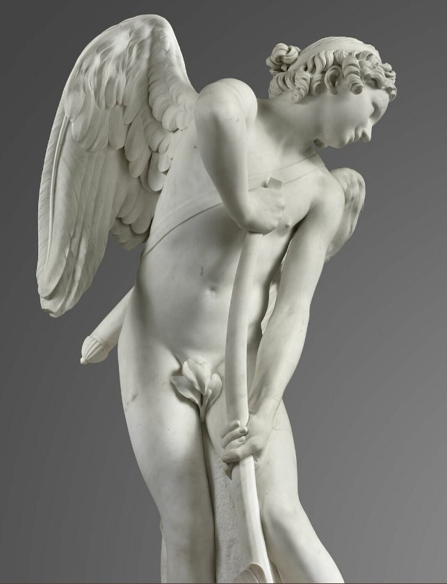 Buchardon wanted to show Love in the moment in which, halfway through the work, he tests the elasticity of the part of the bow that he has just made.
