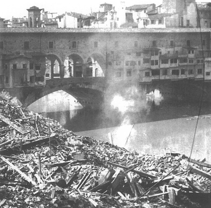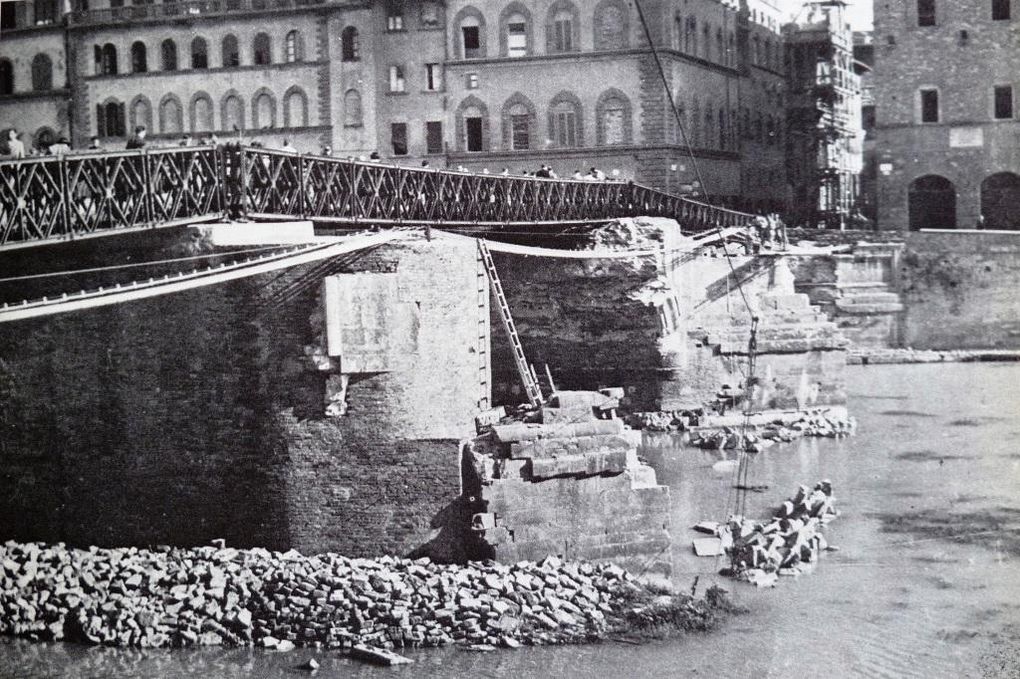 Il fiume Arno permetteva di creare una barriera naturale nel tentativo di rallentare l’avanzata degli Alleati ma era necessario far saltare i ponti e così fu fatto.