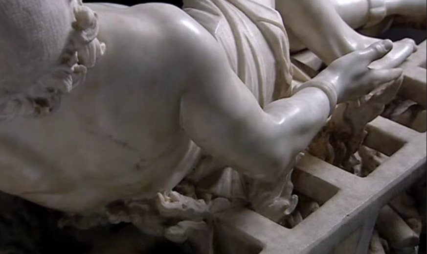 Nello specifico lo scultore mentre lavorava al San Lorenzo aveva ben presente il Cristo morto della mia Pietà Vaticana ma anche il modello per il Dio Fluviale oggi all’Accademia del Disegno a Firenze.
