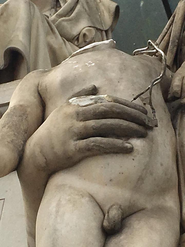 The fragments of Pluto’s head were recovered by the restorer Chiara Piani who happened to pass by by pure chance. They were immediately made safe but it would have been difficult to reassemble that head given that the marble used by Bartolini, not very suitable for resisting atmospheric agents, was becoming increasingly brittle and sugary.