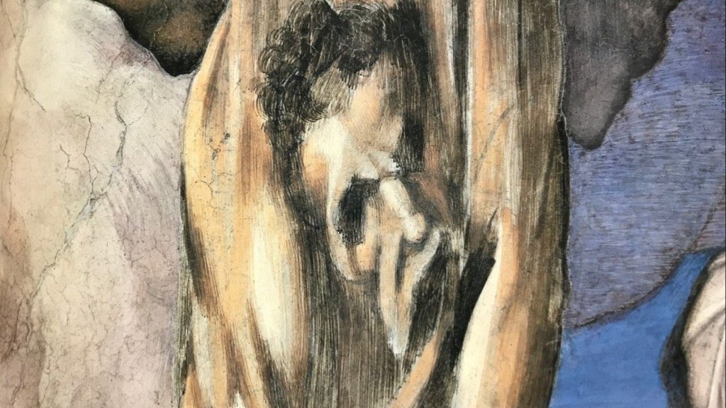 I dedicated him a place of honor in the Last Judgment. He is in fact one of the best-known figures in the great fresco and holds in his hand the skin that they ripped off him which holds a secret.