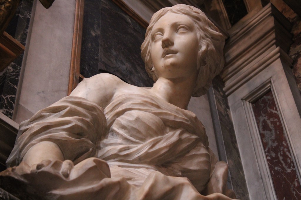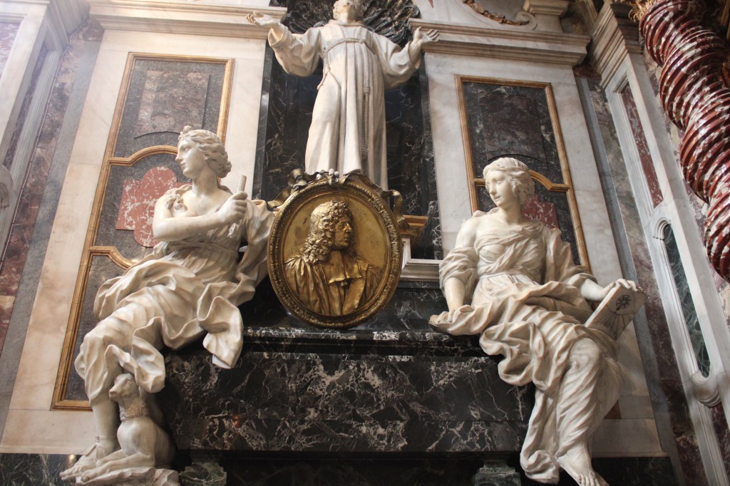 The left sarcophagus is dominated by the sculpture of St. Francis sculpted by Giovanni Camillo Cateni while the allegories of Loyalty and Diligence appear at the feet, admirable works by Anton Francesco Andreozzi and Isidoro Franchi which symbolize the virtues of the deceased.