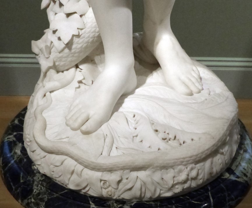 This work was the first full-length idealized sculpture created by the American artist and shows Eve who has just been led into temptation by the serpent.