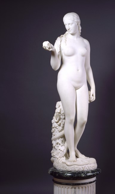 This work was the first full-length idealized sculpture created by the American artist and shows Eve who has just been led into temptation by the serpent.