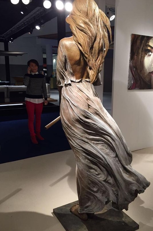 Spesso sono frutto di AI e basta osservarle bene per rendersene conto. Luo Li Rong infatti non lavora questo materiale ma modella in argilla per poi far realizzare i suoi lavori i n fonderia.