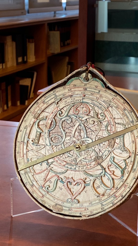E’ anche questo strumento di rilevante interesse storico-scientifico ed estremamente raro: esistono pochissimi astrolabi piani manoscritti su carta o cartoncino anteriori al XVIII secolo. Il Museo Galileo, per esempio, ne possiede solo pochi frammenti databili al XVII secolo.