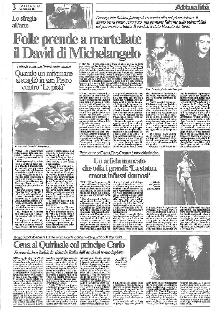 14 settembre 1991: il David preso a martellate