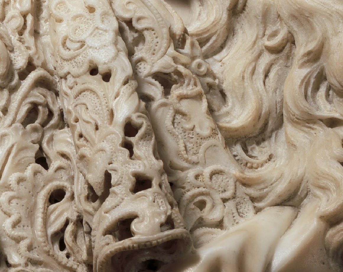 The bust of Foggini amazes with the artist’s virtuosity in creating the cloth around the neck of the great prince: a very refined drill work that gives a good idea of that cutwork lace so real and refined down to the smallest detail.