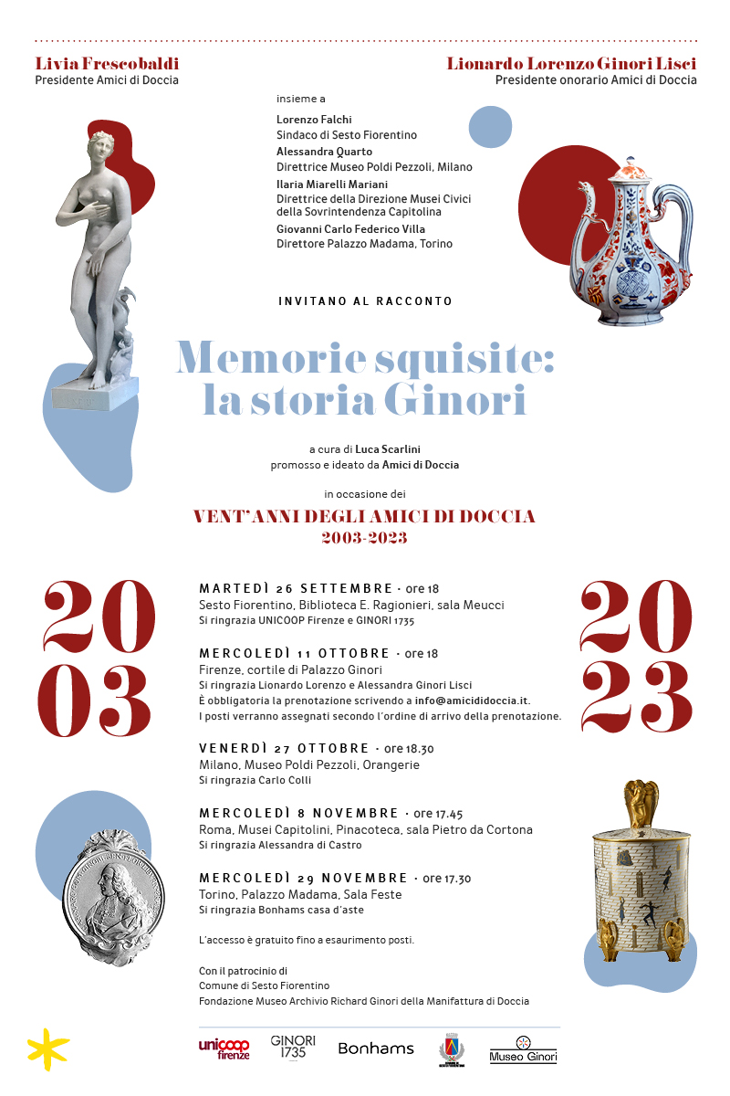 A seguire “Memorie squisite: la storia Ginori” di Luca Scarlini sarà accolto da due grandi istituzioni museali che custodiscono preziosissime ceramiche.