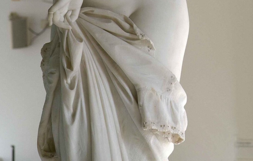 The sculpture of the day that I want to talk to you about today is the Vergognosa sculpted by Donato Barcaglia in 1871, now belonging to the Revoltella Museum in Trieste, established in 1872.