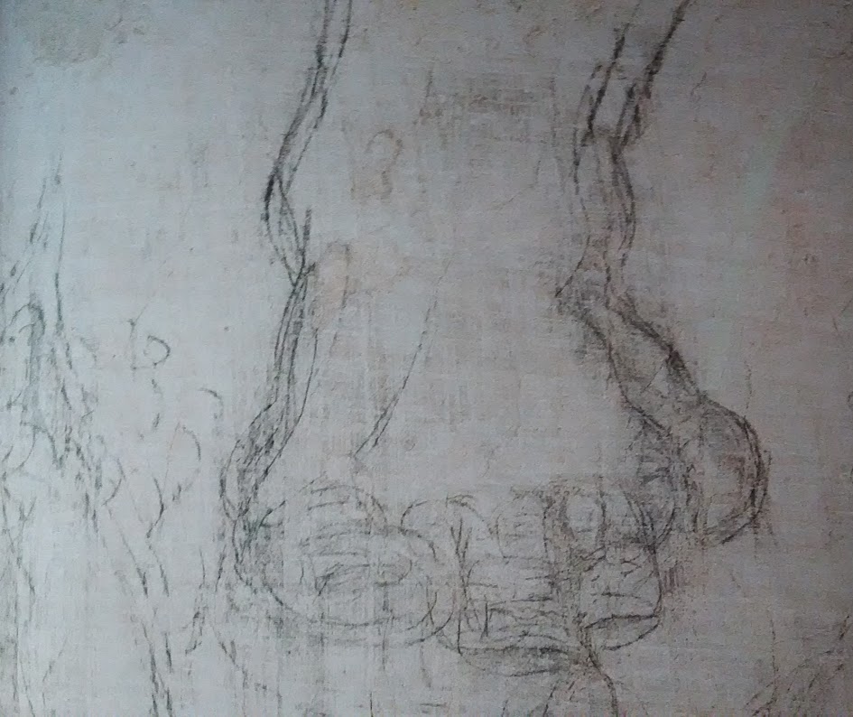 Sono riconoscibili gli studi per le gambe del David Apollo che oggi potete ammirare al Museo Nazionale del Bargello, il capo di quello che sembrerebbe il Laocoonte e forse adoperato in un secondo momento per far tracciare lineamenti simili con martello e scalpello al Montorsoli nel San Cosma.
