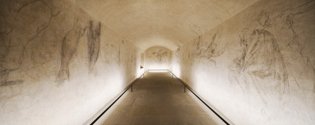 Insomma, per farla corta mi volevano ammazzare. Con la complicità del priore della Basilica di San Lorenzo, mi rifugiai per tre mesi in questa stanza e dovendo passare molto tempo lì dentro, studiai una serie di figure disegnandole sulle pareti.