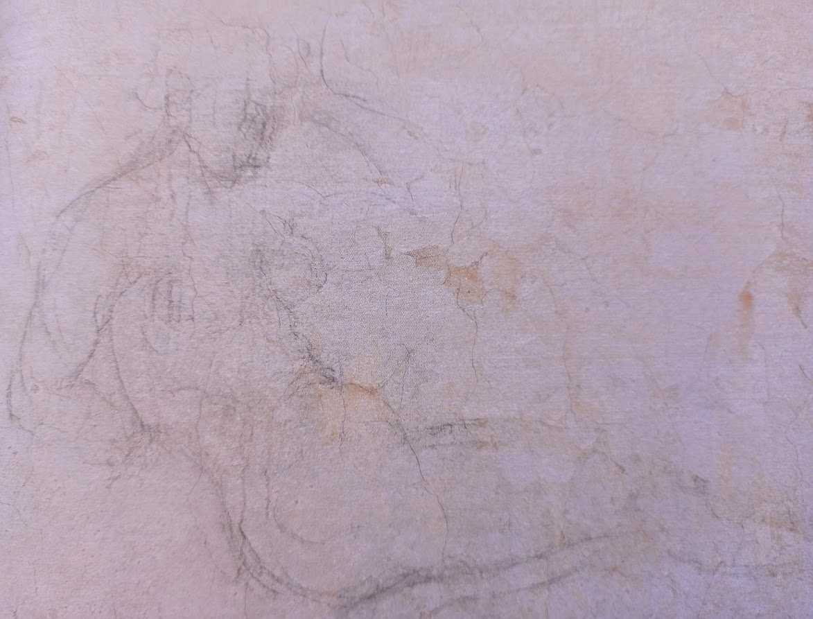 Lo studio sulla parete della Stanza Segreta probabilmente è un primo approccio a quel dipinto che avrei avuto modo di realizzare successivamente e chissà, se sempre all’interno di quell’angusto spazio, abbia avuto modo anche di realizzare l’intero cartone.