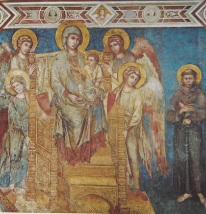 Non molti anni dopo Berlingheri, fu il pittore fiorentino Cimabue a dipingere San Francesco, lavorando a diversi affreschi della Basilica inferiore di Assisi. Nel suo lavoro dedicato alla Vergine in trono fa la sua comparsa San Francesco in piedi.