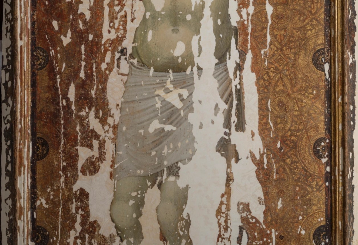 E proprio questo fondo dorato, realizzato dal pittore come un tessuto riccamente decorato quasi come fosse cuoio lavorato a bulino con figure geometriche probabilmente realizzate a compasso, appariva molto danneggiato.