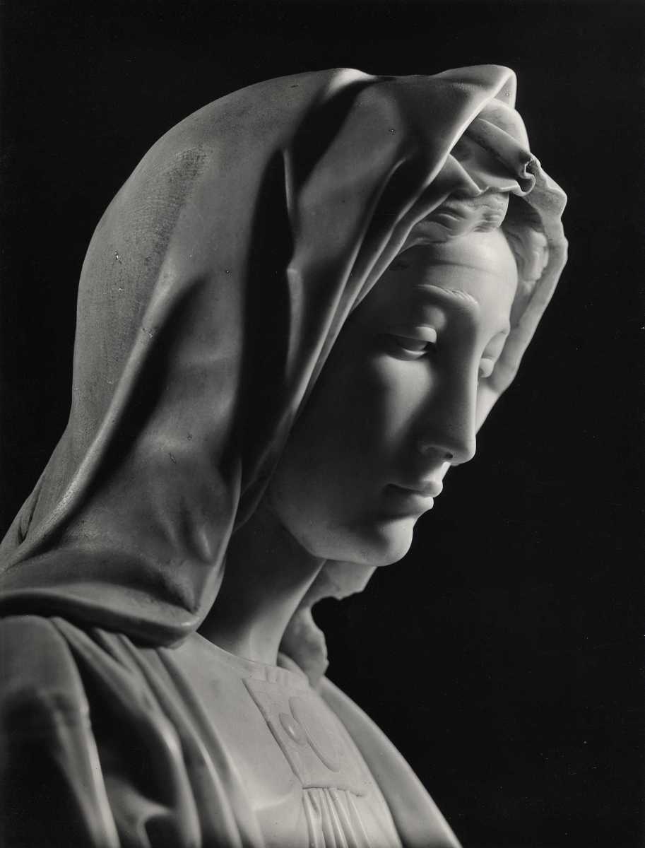 Addirittura l’avambraccio della Madonna sembra più lungo di quello che in realtà è. Anche in questo caso il problema di prospettiva si risolve completamente collocando la scultura ad altezza d’occhi o comunque spostandola più in basso.