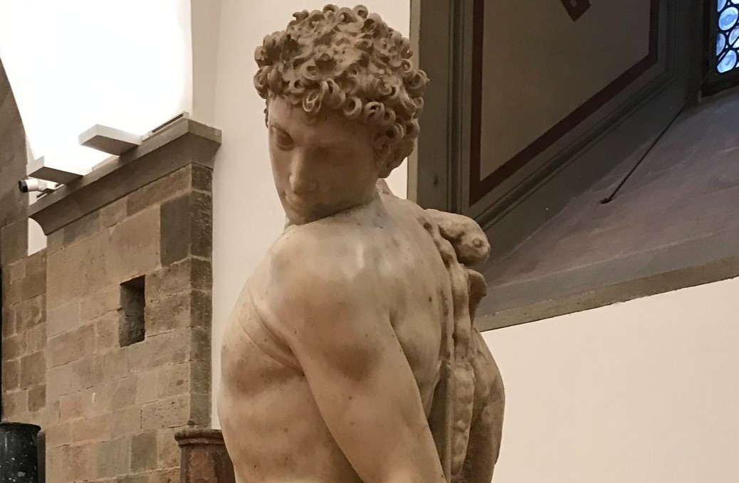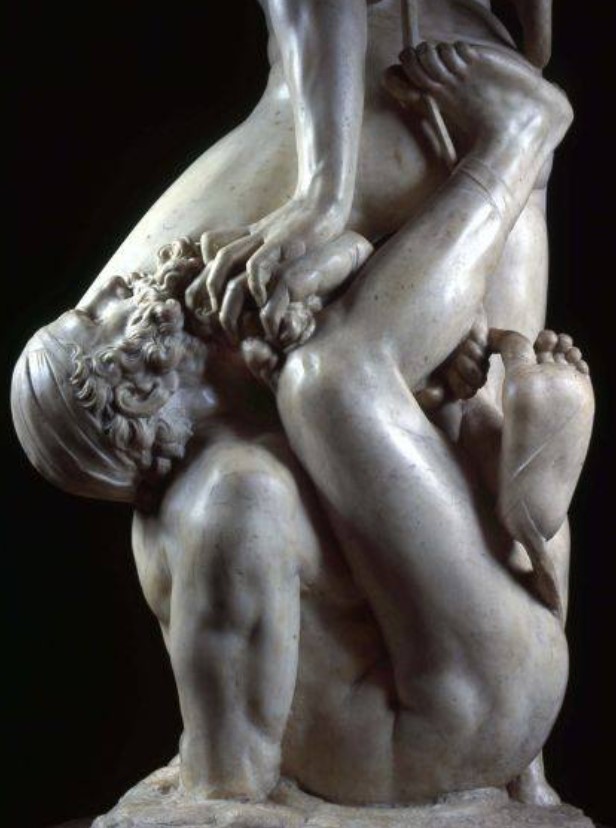 E’ lampante il fatto che Danti, per scolpire il gruppo, si sia fortemente ispirato dal mio della Vittoria, custodito oggi nel Salone de’ Cinquecento di Palazzo Vecchio.