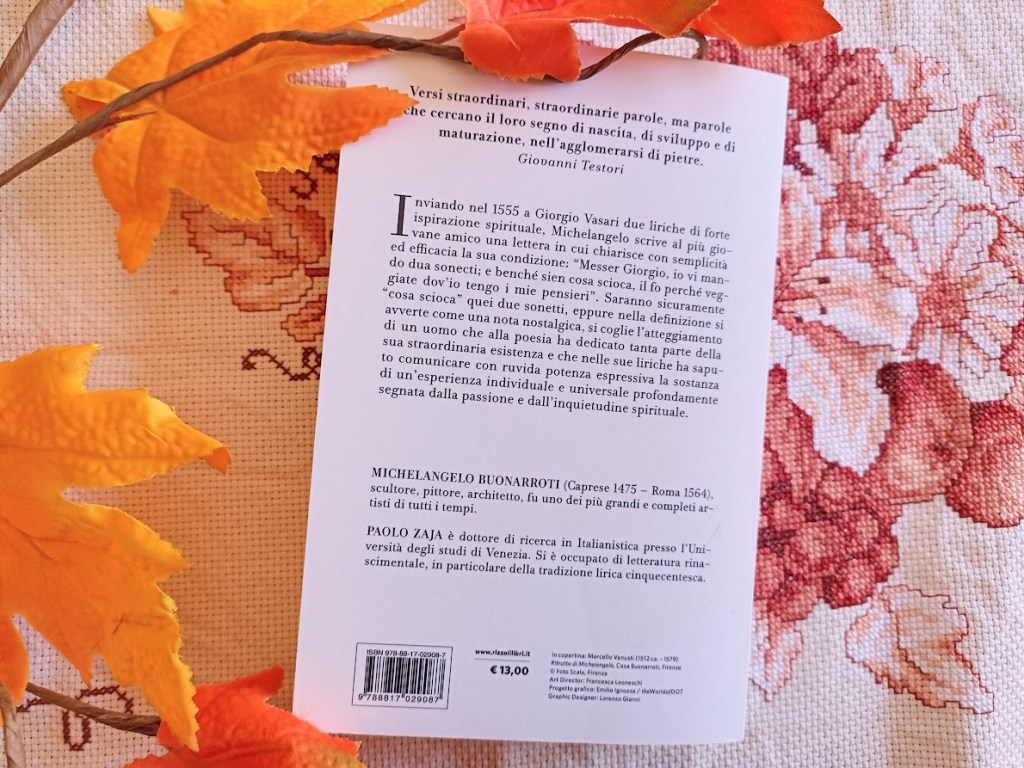 Pubblicato da Bur Rizzoli, oltre a contenere tutti i 302 componimenti poetici che scrissi nell’arco di tempo compreso fra il 1503 e il 1560 con l’aggiunta nelle ultime pagine i 42 frammenti, contiene corpose note che aiutano a comprendere meglio sia la lingua cinquecentesca con la quale ovviamente mi esprimevo che il significato più profondo dei versi più difficilmente decifrabili.