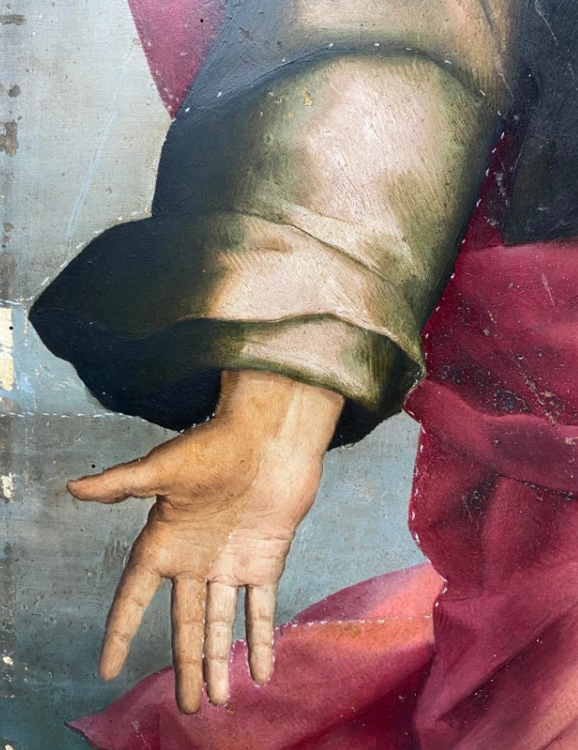 Before the restoration, the panel was in good condition from a purely structural point of view, while the pictorial surface was the result of the accumulation of deposits of atmospheric origin and black smoke from candles, as well as having a heavy patina of an unknown nature.
